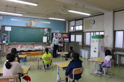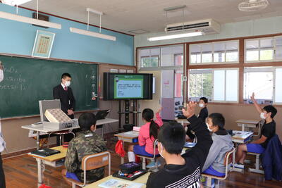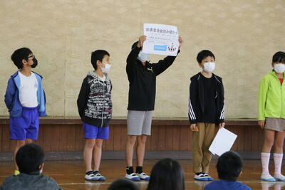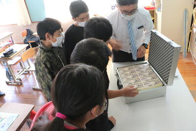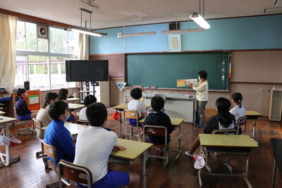 県税事務所の方をお招きし、6年生が税について勉強しました。はじめ、税金を払いたくない人がほとんどでしたが、税金がどのように使われているかを知ると、税金はみんなが生活する上では必要なものだとわかり、「払わなければならないもの」と変化していきました。また、児童からは「どうして消費税は上がっていくのか」「県によって税金の額が違うのはなぜか」といった深い学びにつながる質問もあり、社会に出て生活する上でとても大切なことを学びました。