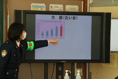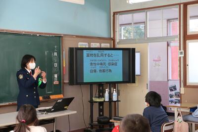 都城地区少年サポートセンターの方2名とスクールサポーター1名をお招きし、薬物乱用について学習しました。薬物などについては遠い世界、違う世界と感じがちですが、SNSなど身近なところに危険が迫っていることから薬物の種類、薬物の恐ろしさ、断る勇気など学習しました。
