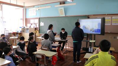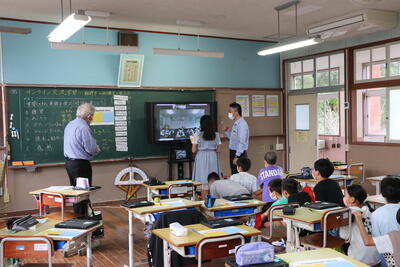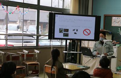 1月25日(水)の5校時に1年生の国語の研究授業を行いました。単元は「どうぶつの赤ちゃん」で動物の相違点を比べることが目標でした。フェニックス自然動物園とオンライでつなぎ、児童は学習したライオンやカンガルーと比べながら他の動物の質問をしていました。動物園の園長先生のお話をしっかり聞いて、ワークシートにまとめていました。