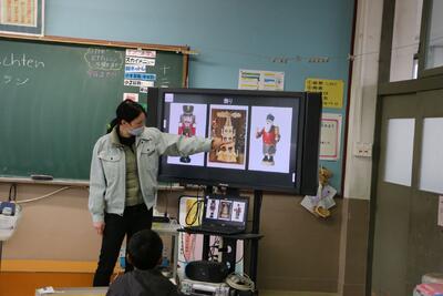 小林市の国際交流員のアントニア・シュルトさんが1年生、2年生にドイツのクリスマス(frohe weihnachten)についてお話しをしてくださいました。1年生では「ハインリッヒという鹿」の絵本の読み聞かせとクリスマスにまつわるクイズを楽しみました。2年生では、クリスマスの飾りやクリスマスマーケット、クリスマスの準備などのお話しを聞きました。
