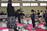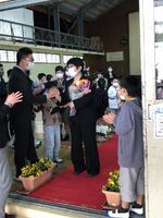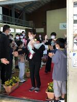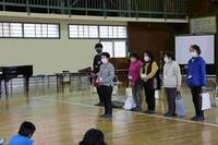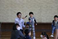 はじめに1年生の授業を参観しました。1年生が自作したカルタで一緒に楽しみました。はじめ、新入学児童は緊張していましたが1年生とカルタをする中で、笑顔も出て楽しく過ごしていました。また、保護者説明会の間には、学級で上級生とともに絵本の読み聞かせを行ったりしました。お昼には、親子で給食を試食しました。説明会の前には、小林ライオンズクラブ・社会福祉協議会よりランドセルカバーと赤白帽子の寄付がありました。ありがとうございました。