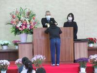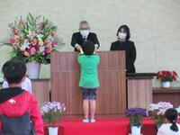 上学年が「須木っこソーラン」を力強く披露しました。次に下学年の学校での様子を寸劇を交えながらかわいらしく演技し、「学校坂道~須木小バージョン~」を歌いました。次に高学年による「須木小のこれまでとこれから」をプレゼンテーションで発表し、最後に全員で「HAPPY BATHDAY 須木小」、「音楽のおくりもの」を歌いました。