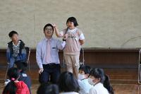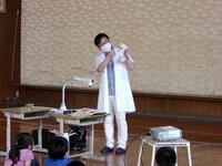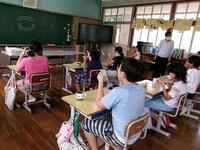 先日11日、歯科医の大坪先生に来校いただき、虫歯についてのお話を聞きました。当日は、大変暑い日でしたが、児童はみんな集中して話を聞いていました。虫歯がどのようにしてできるのか、どうして痛くなるのか、図を示しながら丁寧に説明していただきました。虫歯を放っておくとほかの病気にかかることもあるというお話など早めに治療することが大切だと話されました。話を聞いた後に学級で歯磨きの仕方を手鏡を使って練習しました。