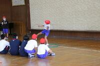 2月15日(水)に「みんなで〇〇する日」を行いました。今回は放送委員会が企画をし、みんなで遊びました。ゲームは「ボールコロコロ」「フラフープ転がし」「チームで大縄跳び」の3つで、高得点を取ったチームが勝ちとなります。異学年で6チームを編成し競い合いました。