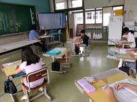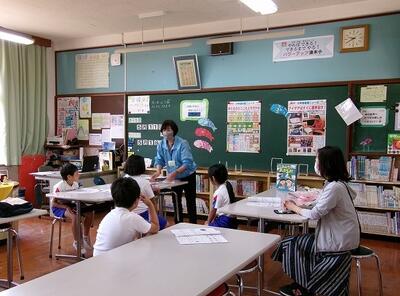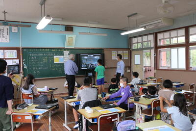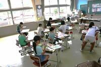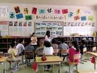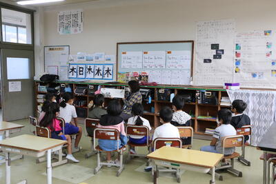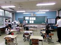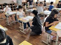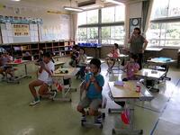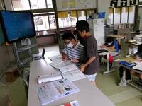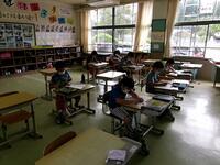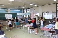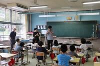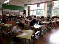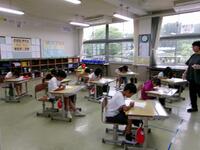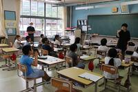 本日(7/3)は、教育委員会の人たちが児童の授業の様子を参観に来られました。また、午後には授業についての研究会を行いました。すべての学級に教育委員会の人たちがまわり、児童の様子や授業の様子を観察されました。児童はちょっぴり緊張気味で発表の声も少し小さかったように感じましたが、どの児童も溌溂としっかり取り組んでおり、ほめていただきました。