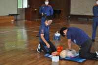 5月31日に職員研修で心肺蘇生の訓練を行いました。毎年行っているもので、すべての先生方は手順をしっかりマスターしておりスムーズな訓練となりました。今回は、ただの訓練ではなく、情報の連携の確認も行いました。講師として来ていただいた須木分遣所の方々から最新の情報もお聞きし、有意義な研修をすることができました。