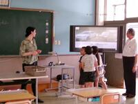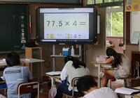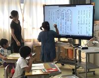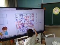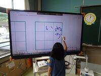 夏休みの間にこれまで使用してきた大型のハイビジョンプラズマディスプレイを新しくしました。新しいディスプレイはこれまでよりもさらに大きく、インタラクティブディスプレイである電子黒板を導入しました。導入に当たっては、小林市に工場のある株式会社ミヤザキ様より小林市の児童生徒のためにと御寄附をいただき導入することができました。株式会社ミヤザキの代表取締役山之上道廣様ありがとうございました。とても使い勝手の良いディスプレイです。