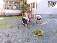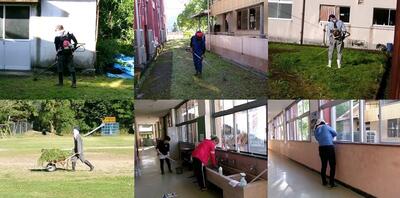 本日(22日)は、17時よりPTA奉仕活動がありました。多くのお父さん、お母さん方が参加していただきありがとうございました。17時からのはじまりに、お仕事など途中で折り合いをつけてこられて方もいらっしゃったと思います。校舎の中の普段は手の届かないところの窓ふきや運動場周辺や校舎周辺の草刈りなど、職員や子どもたちではなかなかできなかったところをきれいにしていただきました。大変きれいになりました。子どもたちは花壇の草取りを一所懸命していました。明日からきれいになった学校・校舎で気持ちよく勉強できると思います。
