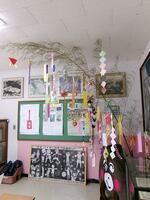 今年も小林地区更生保護女性会から七夕の飾りと短冊、飾るための竹をいただきました。毎年ありがとうございます。さっそく、子供たちが短冊に願いごとを書いて飾りました。