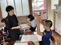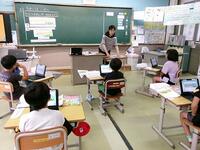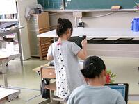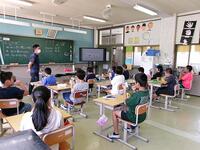 九州北部は豪雨により大変な状況ですが、南部は気温も上がり熱中症に気を付けなければならない状況です。昼休みも途中、休憩を入れ、水分補給をしています。児童は、タブレットを活用したり、虫歯のことを養護教諭や担任と一緒に勉強したり、6年生では、割合について、わからないことなどを話し合いながら授業を進めています。