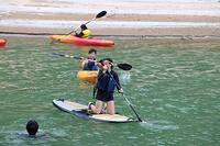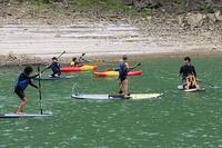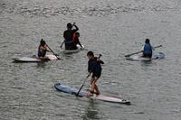 7月に予定していたクラブ活動のSUP体験は、小野湖が濁って体験活動が延期され、8月29日(火)に実施しました。やや曇っていて心配されましたが、無事最後まで体験することができました。昨年体験している5・6年生は要領がわかっており、スムーズに体験していました。初めての体験であった4年生は、初めは少し怖いと言っていた人がいましたが、慣れると、得意げにパドルの操作をしていました。大変貴重な体験ができました。