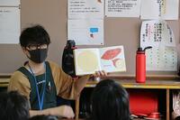 図書委員会では、6月19日(月)から6月30日(金)までを読書旬間として、読書に親しむためのいろいろな企画を立てています。梅雨のこの時期、外で遊べなかったり、家での読書にぴったりです。22日(木)の今日は、図書委員が各クラスに出向いて絵本の読み聞かせを行いました。読み手の図書委員もやや緊張気味、聞き手の児童も一生懸命聞いていました。