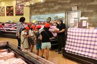 3年生は本日、社会科見学の一環で松栄ストアー「まちなか松栄」の見学に行きました。はじめに店長さんからお店の説明をしていただき、児童から多くの質問に答えていただきました。その後、お肉やお魚、野菜から果物までいろいろな品物を陳列の仕方から産地まで様々な角度で見学しました。お肉のコーナーでは、実際のサーロインを見せてもらい、お肉の切り方などお仕事の様子をいろいろ説明していただきました。