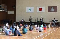 20日に鑑賞教室を行いました。今年は、音楽(JAZZ)の鑑賞教室です。JAM(JAZZ  At Miyazaki)という宮崎で活動している4人のバンドの方々がJAZZを演奏しました。JAZZは児童にとってはあまりなじみはありませんが、よく知っている曲をJAZZアレンジすることでまた違ったテイストで楽しむことができます。今回は、秋の童謡をボサノバ調でやったり、バラード調でやったり、スイングしたりと楽しみました。普段はテレビなどを通して聞いていた音楽が、生で演奏が聴けてよかったといった感想がありました。♬