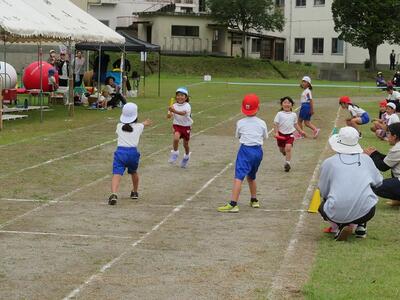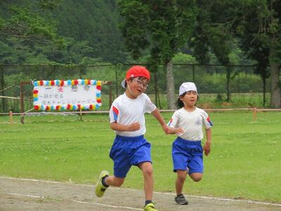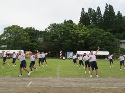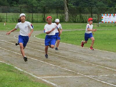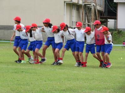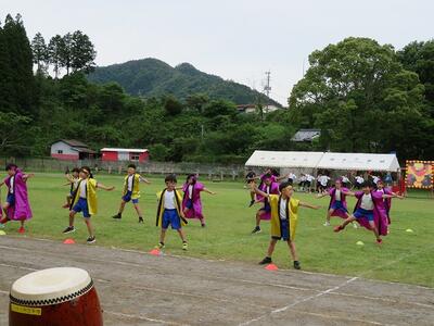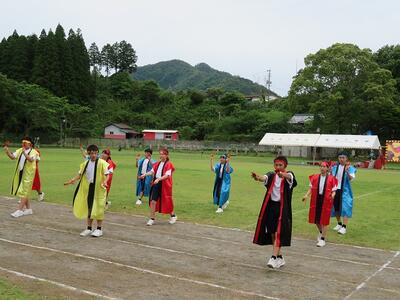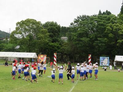 運動会では、須木小学校の子どもたちも元気いっぱいに活躍をすることができました。力いっぱい走ったり、友達と協力して団技をしたりしました。ソーラン節ではみんな元気よく声を出してすばらしい踊りを披露してくれました。全員リレーや全員ダンスは、保育園児から中学生まで一緒になって大変盛り上がりました。