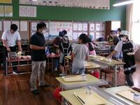 7月12日の学校給食のメニューは須木小のリクエストで「きむたくごはん 春雨スープ ギョーザ」でした。小林市の広報誌8月号に給食の特集をするということで写真等の取材を受けました。5・6年生の教室を中心に配膳風景、楽しく食べている様子、給食の感想など多くの取材をしていただきました。8月号の広報誌にどのように掲載されるか楽しみです。