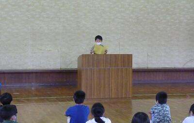 10月7日(金)に1学期が終了し、4校時に終業式を行いました。1年生と3年生が自分が成長したことを発表しました。嫌いだった算数がすきになったことやできなかった縄跳びが少しずつできるようになったことなどを発表してくれました。それぞれ目標を掲げ、一所懸命に取り組んできた証拠だと思います。2学期もしっかり目標を立てて頑張って欲しいです。
