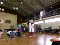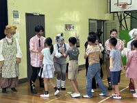 演劇後にはワークショップを行い、口の体操として早口言葉を練習したり、音楽に合わせて左右手足を動かすリトミックをみんなで行いました。