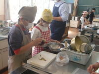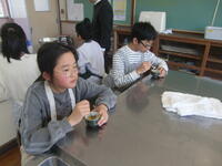 3月3日の今年度最後のクラブ活動では、地元のお菓子屋さんを講師に、プリンづくりを体験しました。4~6年生がおいもプリンづくりに挑戦しました。手順に沿って、班で協力して作っていきました。