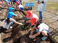 11月7日(火)の午前中に須木中央保育園の年中・年長さんとの交流学習会を行いました。5月25日に植えたサツマイモの収穫と1・2年生が作ったおもちゃで交流しました。司会を2年生が行い、それぞれで作ったおもちゃの説明をした後に、保育園生と一緒に遊びました。楽しい時間となりました。