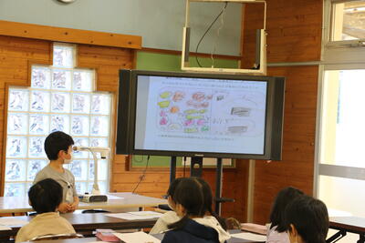 本日は、3校時・4校時に東方給食センターの日髙さんに食育の授業をしていただきました。児童はあらかじめつくりたいお弁当を絵に描いたりして、発表をしました。授業では体に合った弁当の大きさや彩り、バランスなどについて学びました。冬休みに「お弁当の日」を設定します。今日、学んだことを活かして親子で弁当作りをがんばって欲しいと思います。
