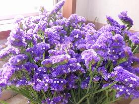 地区で花を育てている方から、学校にスターチスの花束をいただきました。売り物にならないから、ということでしたが、それはそれな見事な、というよりとても可憐な感じのする花です。