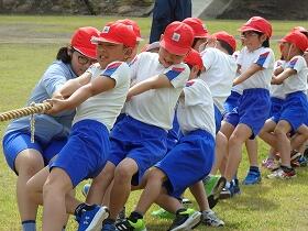 今日の練習メニューは、エール交換、全校団技「つなひき」選抜リレー、そして全校ダンスです。