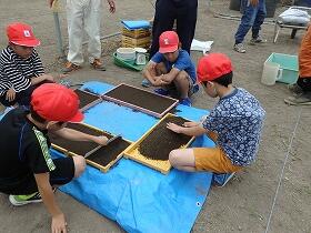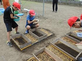 5年生が、田植えに先駆けて、苗作りに挑戦しました。