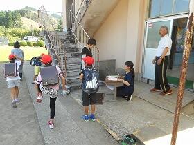 須木小学校では、初めての取り組みで、事前に、車の誘導方法や児童の待機場所の検討を進め、当日を迎えました。
