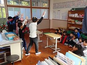 3~6年生が国スポ・障スポのテーマ「ひなたのチカラ」を踊りました。