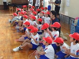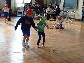 3分間連続で跳んだり、2重跳びや、交差跳びを披露したりと、みんな、得意な飛び方を次々と発表。一緒に参加してくれた、須木保育園の園児の皆さんも、頑張りました。