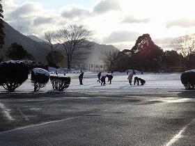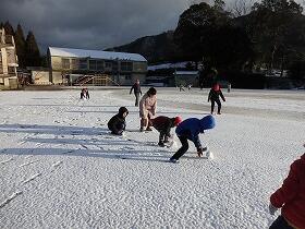 子ども達は、みんな、大喜び。学校に着くとすぐに真っ白な運動場に飛び出し、思い思いに遊んでいました。