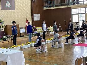 一年生は、教科書を受け取ったり、六年生からの歓迎の言葉を受けたりと、緊張の中にもしっかりとした態度で立派に式に臨むことができました。