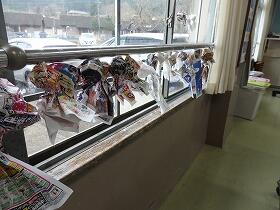 1年生の教室では、てるてる坊主がいっぱいぶら下がりました。