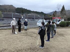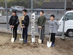 運動場のフェンス側に植えた桜の木、もちろん大きな木となり、桜の花で楽しませてくれるのは、卒業生が大人になったときだとは思いますが、その時まで、しっかりと学校を見守り続けてくれると思います。