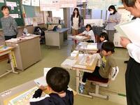 17日の2時間目は1年生の研究授業がありました。ユニバーサルデザインの視点を取り入れた授業を行いました。今日の授業は算数の繰り上がりのある足し算の計算方法を見出す内容でした。駐車場に自動車が入ってきた状態を数字で表し、10のまとまりをつくって考えることを学びました。児童は数図ブロックを並べて考えたり、友達の意見を聞いたりしながら勉強をしていました。