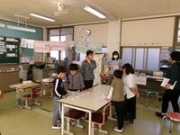 24日のクラブ活動は「校長先生のお楽しみクラブ」ということで、講師をお呼びし、須木の特産であるくりを使った草木染めを行いました。くりは実際に須木のくりを使って染めました。児童は、あらかじめ下処理をしたハンカチにそれぞれ「マメ絞り」や輪ゴム、割りばしなどを使って、どんな模様になるか想像しながら、自分だけの模様を作りました。その後、くりのイガを煮出した染料に付けたり、媒染液などに付けたりして染めていきました。最後に、絞り込んだ自分たちのハンカチを拡げ、自分だけのハンカチを作りました。
