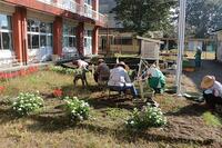 本日は、すき商工会女性部のみなさん(8名)が9時過ぎより、校庭の除草作業に来ていただきました。花壇には夏に植えたサルビアとニチニチソウが頑張って咲いていましたが、周りには雑草(雑草という名の草はありませんが・・・・)が生い茂っており、大変な状況でした。女性部の皆さんは道具を持ち寄り、手際よく草を抜いていき、あっという間にきれいにしていただきました。本当にありがとうございました。とてもきれいになりました。