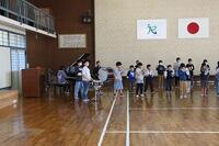 本日、第2回目の音楽大会の全体練習を朝に行いました。入退場の練習やステージに上がったイメージでの練習を行いました。先生方からはもっと口を開けて、笑顔で歌うなど指導がありました。朝、夕は寒くなり、声がすぐには出しにくい状況でしたが、何度か練習するうちに声も出だし、表情もよくなりました。本番では練習通りにできるといいなあと思います。是非、本番も聴きに来てください。
