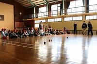 小林市社会福祉協議会須木支所が2月17日(土)につどいの場ふるさとセンターで「ボッチャ交流大会」を計画しています。小学校からも1チーム参加の予定ですが、児童は「ボッチャ」をしたことがなく、ルールも知りません。そこで本日(16日)、昼休みに社協の方2名に来ていただき、ルールの説明とやり方を教えてもらいました。その後、さっそくみんなでボッチャの体験をしました。下学年・上学年に分かれ、ゲームをしましたが、大変盛り上がりました。きっと最強のチームが出場するでしょう。