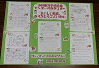 26日金曜日に給食感謝集会をレストランで行いました。会では、小林東方給食センター栄養士の八重尾先生に来ていただき、給食を作るときの話や気を付けていることなどを話していただきました。児童たちは、毎日おいしい給食を食べられるのは、様々な人たちに支えられていることを実感し、あらためて感謝をしていました。会の終了後に、各学級の給食配膳を見学したり、給食を楽しく食べている様子などを見ていただきました。