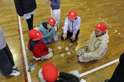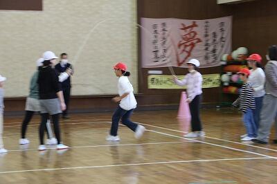 今回の「みんなで〇〇する日」はすくすく委員会が担当でした。「なわとび億万長者」「いろはに金平糖」「8の字飛び」「縄跳びサバイバル」の4つのコーナーをつくり、チームでそれぞれのコーナーを回りながら、縄跳びゲームを楽しみました。児童全員が体育館に集まり、チームで競争しました。競争の結果、Dチームが優勝しました。