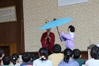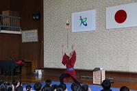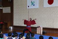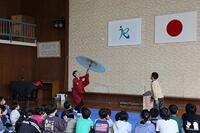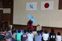 江戸太神楽の仙若さん(旧野尻町出身)に来ていただき、江戸太神楽の公演をしていただきました。江戸太神楽とは、伊勢神宮や熱田神宮などで獅子頭をもって各地に出向いてお札を配ってまわった神事が起源とされているそうです。当日は、撥芸、鞠、傘回しなど多数の曲芸を披露され、児童も傘回しに挑戦しました。須木中央保育園の園児も招待し、全校児童で楽しい時間となりました。