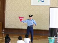 小林警察署から1名、交通安全協会から4名の方をお招きし、交通安全教室を行いました。1・2年生は「安全な歩行の仕方」で駐車場での危険な場所であったり、歩道の歩き方、横断歩道の渡り方など、丁寧に説明していただき、信号機機を見ながら具体的に体験しました。