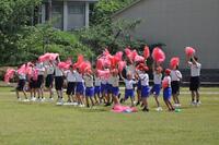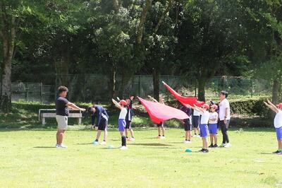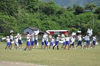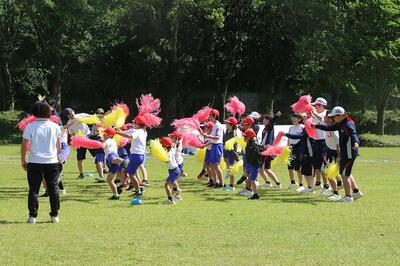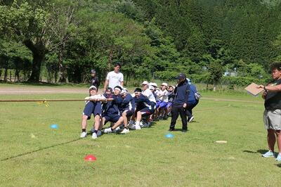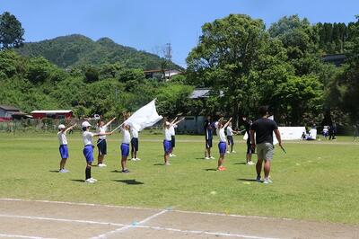 本日(5/16)は朝から大変風が強く、心配されましたが、午前中に中学校のグランドで初めての合同練習を行いました。時折、強い風が吹きましたが、小学生、中学生ともに開閉会式、エール交換、応援練習、全員リレー、綱引き、団対抗リレーの練習をしました。自分の立ち位置、礼の仕方、応援の仕方など午前中いっぱい頑張りました。素晴らしい運動会になるよう全員で頑張っています。