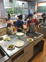 5・6年生の調理実習がありました。各班きれいに野菜炒めとスクランブルエッグができました。野菜の切り方や卵の割り方もとても上手にできていました。さて、味のほうはどうだったでしょうか?