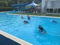 水泳の授業が始まりました。今年度も市営プールを利用しての授業です。行き帰りはバスの送迎です。ちょっぴり遠足気分かな?低学年は、市営の屋外プールで行いました。やや風があり、寒い状況でしたが、児童は元気にプールでの授業を受けていました。宝探しをしたり、輪っか潜りをしたり、水中で歌を歌ったりしながらを楽しんでいました。
