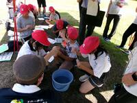 18日に須木中央保育園児を招いて、おもちゃ遊びと芋ほりを行いました。おもちゃ遊びは1・2年生が作成したおもちゃを保育園児と一緒に楽しみました。魚釣りでは、イカや魚を釣竿でうまく合わせて釣っていました。紙コップけん玉は松ぼっくりを上手に紙コップの中に入れていました。また、小黒板で坂道をつくり、折り紙で作ったおもちゃを転がして遊んだり、うちわをあおいでおもちゃを動かしたりしてました。保育園児も小学生も一緒に楽しむことができてよかったです。