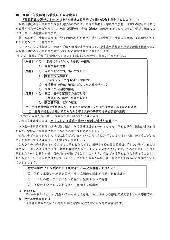 概要版は以下の通りです。本文は右をクリックしてご覧ください。飯野小学校子どもいじめ防止基本方針(改訂版).pdf