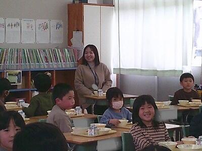 オンラインでの給食感謝集会を行いました。はじめに、給食委員会が給食に関する話をしてくれました。次に、えびの市防災食育センターの栄養教諭より、献立や食材の工夫などについて、クイズ形式で教えていただきました。最後に、全校児童が書いた、安全でおいしい給食に関わってくださる方への感謝の手紙をお渡ししました。集会後は子どもたちの給食準備や食べる様子を見ていただきました。以前、食育指導をしていただいた1年生は、給食を一緒に食べることをとても喜んでいました。また、給食委員会の子どもたちがコンテナ室で片付ける様子を見られて、「子どもたちがよく動いていて感心です。」と言われていました。嬉しいことです。